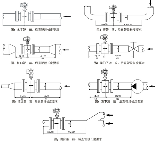 流量計(jì)前必須有10D左右的直管段,以消除各種局部阻力對(duì)流線分布對(duì)稱性的影響。