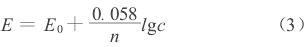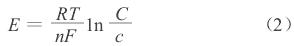 式中:n為該金屬的化合價;T為絕對溫度;R為理想氣體的摩爾常數(shù),8.31焦耳/摩爾·K;F為法拉*常數(shù);C為金屬離子濃度的常數(shù);c為溶液中金屬離子的活度。