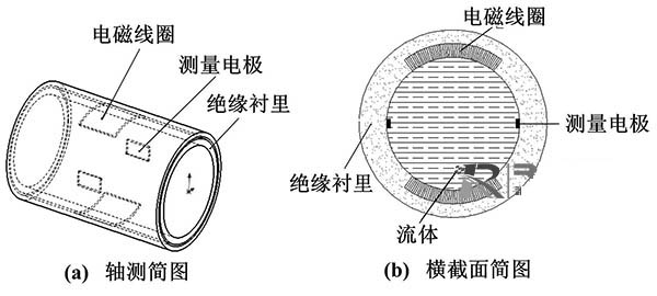 電極與被測流體通過絕緣管形成檢測電容,通過此電容來藕合流量信號。其主要的結構形式按照電極的安裝位置可以分為兩種:電極嵌人測量管的絕緣襯里內部(嵌人式)、電極貼在測量管外部(外貼式)。嵌入式結構與普通一寸管污水流量計結構相似,而外貼式大多是通過陶瓷表面金屬化技術將電極貼在測量管外。