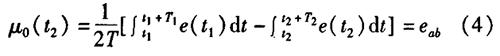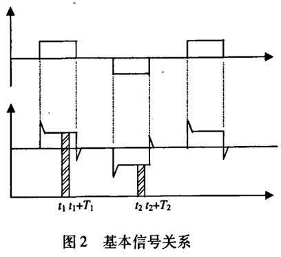 腐蝕性污水流量計一般都采用工頻交流電源供電,其電源電壓的幅值和頻率的變化都會給腐蝕性污水流量計帶來電源性干擾噪聲。對電源電壓的幅值變化,因采用多級集成穩壓,一般而言電源電壓的幅值變化對電磁流量的測量精度影響不大。當電源電壓的頻率波動時,雖然其波動范圍有限,但對腐蝕性污水流量計測量精度影響較大。為了解決工頻干擾問題,實現對流體流速感應電勢e柚信號的準確測量,需利用以下基本關系:①勵磁周期為工頻周期的整數倍,即勵磁頻率為50/nHz(n為偶數);②正負勵磁下的同相位采樣。圖2是對應低頻矩形波勵磁形式下的典型電勢信號形式,按上述關系在一個勵磁周期下,若假設t。和t:點為工頻干擾的等效干擾點,且采樣寬度T=T1=T2,則e –ab的基本算式為:,
