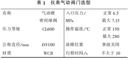 1) 蒸汽管道流量計(jì)出口管線總閥泄漏無法在線處理,導(dǎo)致氣化爐停車。在入氣化爐根部增加 2 臺儀表氣動閥門,要求每月進(jìn)行 2 次開、關(guān),防止閥門出現(xiàn)卡塞現(xiàn)象。 新增 2 臺儀表氣動閥門相關(guān)參數(shù)見表 1。