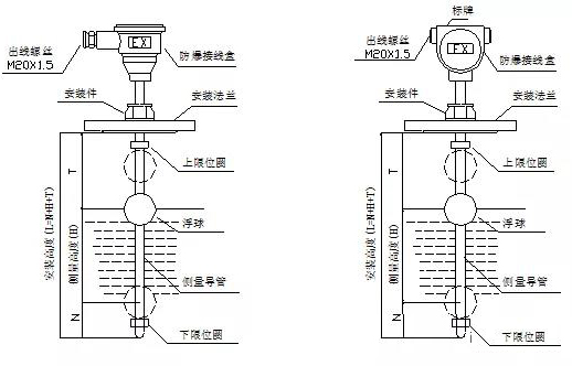 頂裝式浮球液位計(jì)是一種工業(yè)生產(chǎn)中普遍在使用的液位測(cè)量?jī)x表,其安裝方便靈活,具有良好的適應(yīng)性,法蘭式和支架式安裝都可進(jìn)行,可適應(yīng)不同的工況條件。浮球液位計(jì)是以磁浮球?yàn)闇y(cè)量元件,通過(guò)磁耦合作用,致使傳感器內(nèi)電阻產(chǎn)生線性變化,再通過(guò)智能轉(zhuǎn)換器將電阻變化轉(zhuǎn)換成4~20mA標(biāo)準(zhǔn)電流信號(hào)傳輸,特殊訂制的型號(hào)亦可以疊加HART協(xié)議的信號(hào),*終能液晶方式顯示。據(jù)變送器與顯示器的不同型號(hào),可以現(xiàn)場(chǎng)顯示液位的百分比、4~20mA電流及液位值,此遠(yuǎn)傳信號(hào)可以遠(yuǎn)傳供給控制室,以實(shí)現(xiàn)液位的自動(dòng)檢測(cè)、控制和記錄。頂裝式浮球液位計(jì)適用于石油、化工、電力、輕工及醫(yī)藥等行業(yè)污水處理及各類(lèi)常壓和承壓容器內(nèi)介質(zhì)液位的測(cè)量,是測(cè)量各類(lèi)貯罐、地下貯槽的*為理想的液位計(jì)產(chǎn)品。