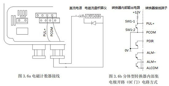 1.4.5 頻率(脈沖)、上下限報警、流向標示等輸出均為集電極開路的電平輸出信號。