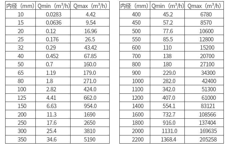 污泥流量計的流量范圍是比較寬的,一般可以在0.5-10m/s之間選擇。一般情況下,上限流速在原理上是不受限制的,然而通常我們建議不超過 5m/s ,除非襯里材料能承受液流沖刷,實際應(yīng)用很少超過 7m/s, 超過 10 m/s 則更為罕見。滿度流量的流速下限一般為 1m/s ,有些型號儀表為 0.5m/s。有些新建工程運行初期流量偏低或在流速偏低的時候運行,從測量精度角度考慮,儀表管徑應(yīng)改用小的管徑,以異徑管連接之。 用于有粘附、沉積、結(jié)垢等物質(zhì)的流體,選用流速應(yīng)不低于 2m/ s ,*好提高到 3 -4m/s 或以上,起到自清掃 防止粘附沉積等作用。用于礦漿等磨耗性強的流體,常用流速應(yīng)低于 2~3m/s, 以降低對襯里和電極的磨損。在測量接近閾值的低電導(dǎo)率液體,盡可能選定較低流速(小于 0.5~1m/s ) , 因為流速提高,流動噪聲會增加,而出現(xiàn)輸出晃動現(xiàn)象。